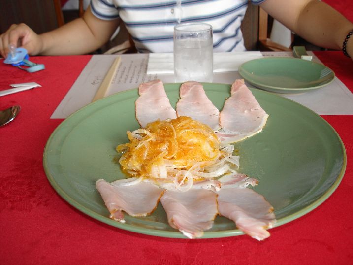 前菜 : 煙燻豬肉片 + 洋蔥.....我覺得光這個就很好吃了...