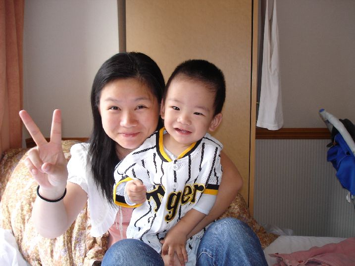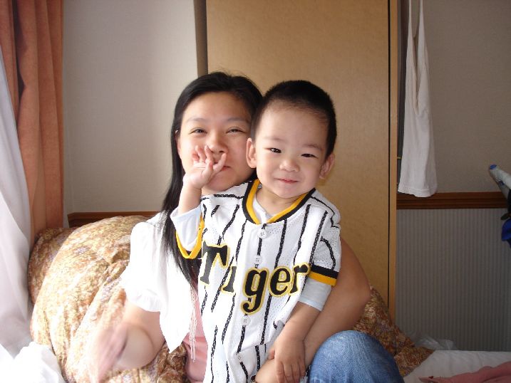 只好今天一大早來試穿昨天特地買的阪神隊球衣....